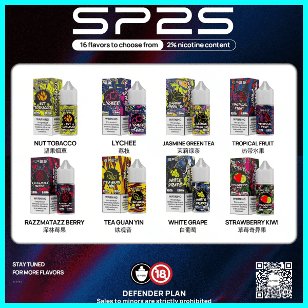 SP2S煙油結合 純淨成分、均衡口感與解癮效果,是注油式設備玩家的理想選擇。不論偏好清涼、果香或經典風格,都能在SP2S系列中找到專屬口味,享受穩定持久的霧化體驗。